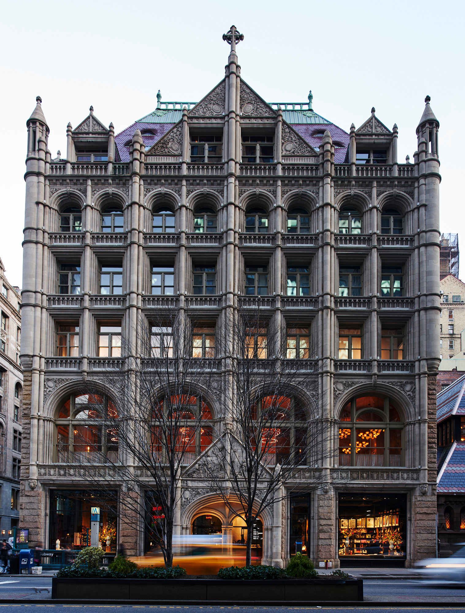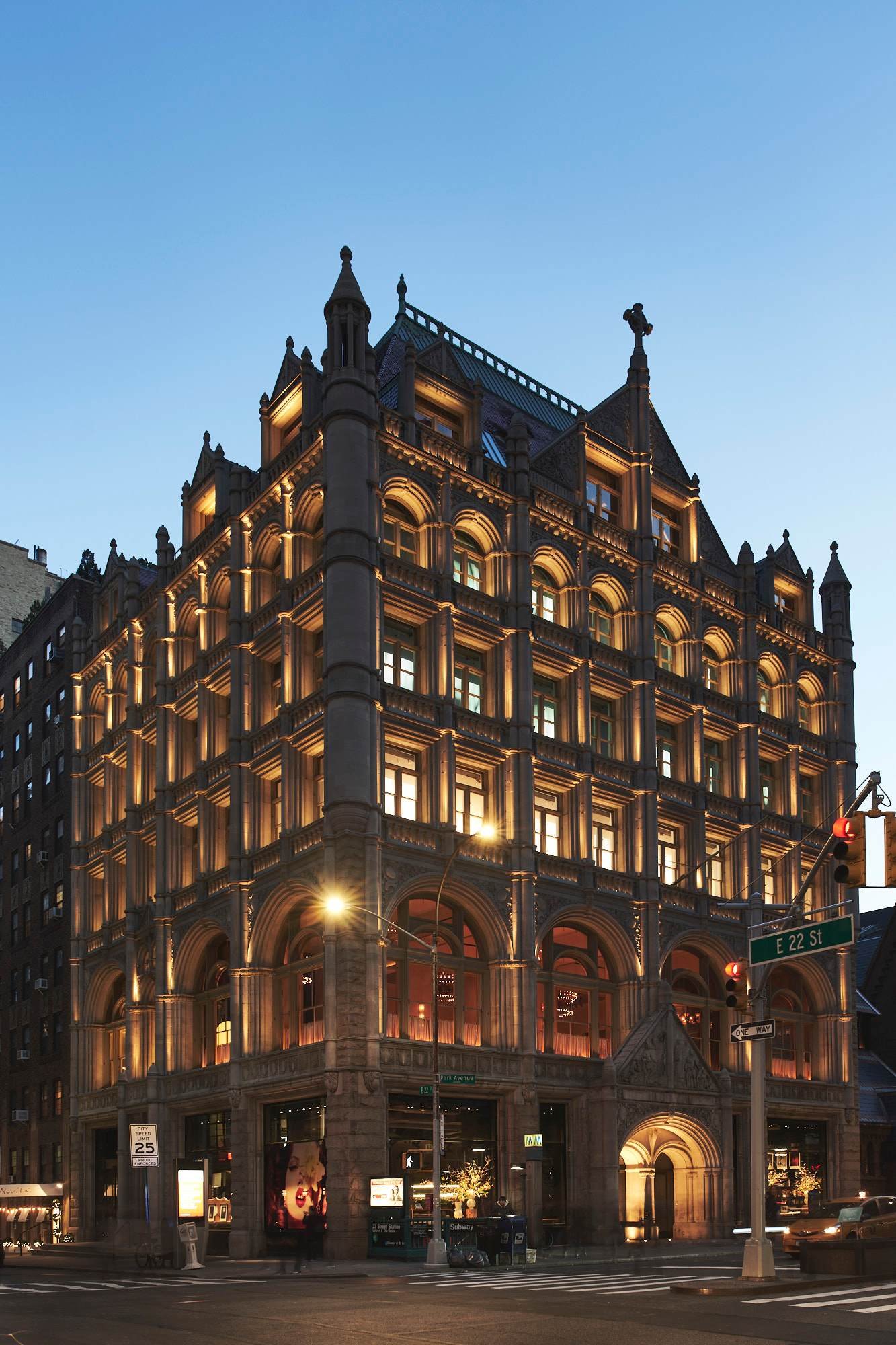 Originally constructed in 1894 and known as the Church Missions House, this stunning six-story commercial property showcases the quintessential architectural style of the turn of the 20th century. Designed by renowned architects Robert W. Gibson and Edward J. Neville Stent— who combined Gibson’s formal training at the Royal Academy of Arts in London with Stent’s artistic vision—the building was commissioned by prominent donors including Cornelius Vanderbilt and J. Pierpont Morgan. In recognition of its historical significance, 281 Park Avenue South was designated a New York City landmark in 1979 and added to the National Register of Historic Places in 1982.